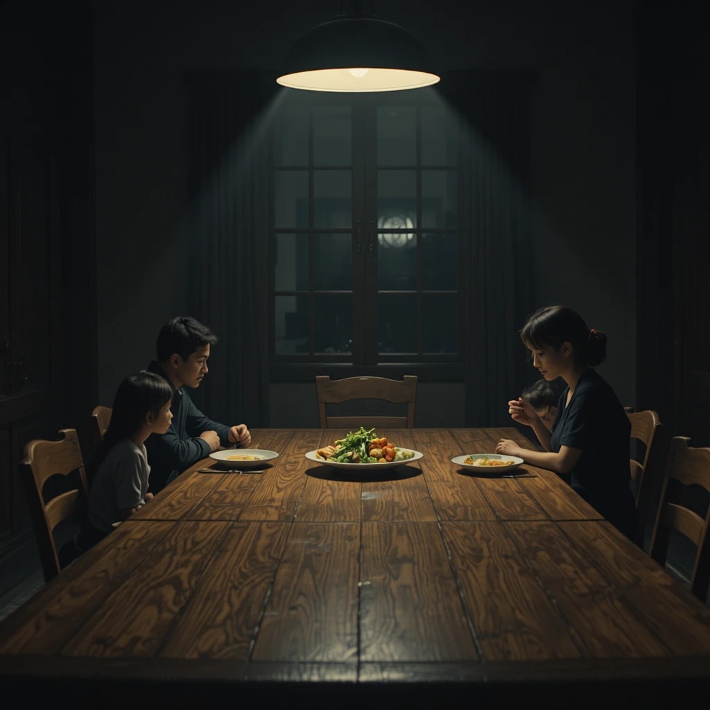The television hummed in the living room. The refrigerator rattled every few minutes. Cars passed outside, their headlights brushing across the curtains like wandering ghosts. But at 8:00 p.m. every evening, when the family gathered around the wooden dinner table, a different kind of silence filled the room — one that felt heavy enough to press against the chest.