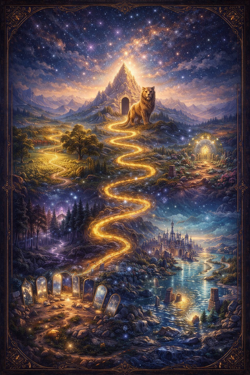 At the very top of the mountain stands a simple sign. It has only one sentence written on it. The road was never trying to test you. It was trying to reveal you. And when travelers finally understand this, something extraordinary happens. They stop trying to reach the end. They start walking with wonder. They greet the travelers beside them. They share lantern light. They laugh at the deserts. They listen to the forests. And suddenly the road itself seems to glow. As if it recognizes them. Because the oldest secret of the journey is this: The road remembers every step. And somewhere far beyond the horizon, where the mountains meet the stars, the Great Map continues unfolding. Waiting for the next traveler. Waiting for you.
