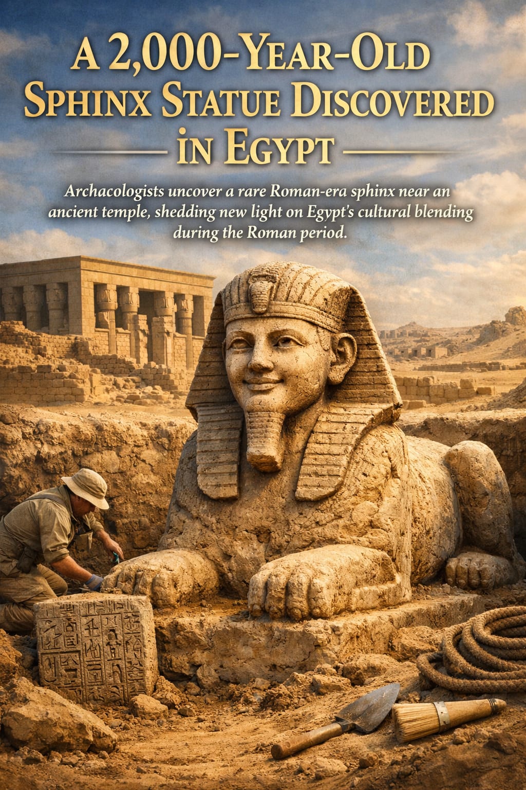 Archaeologists uncover a rare Roman-era sphinx near an ancient temple, shedding new light on Egypt’s cultural blending during the Roman period.