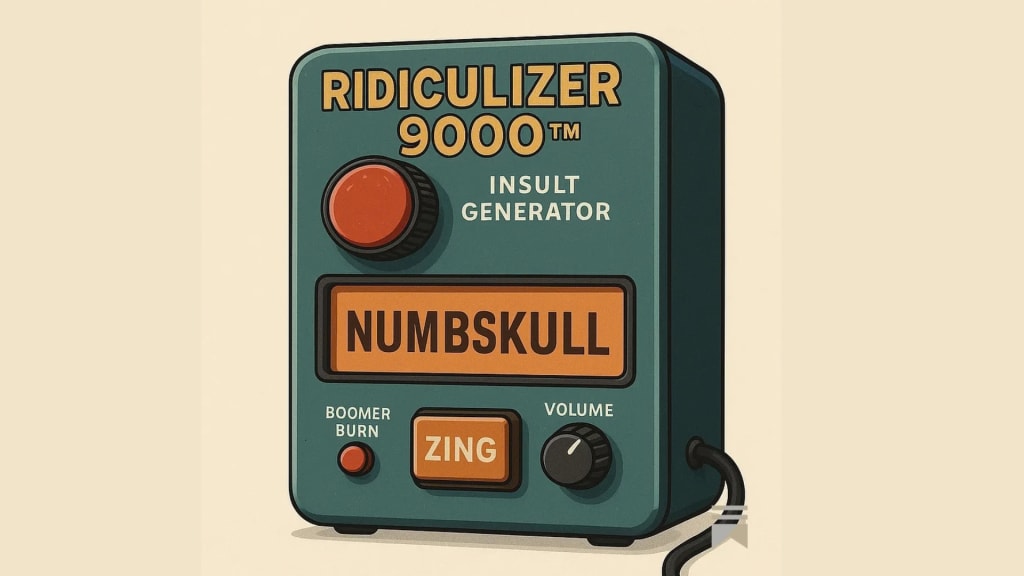 Order your Ridiculizer 9000™ today and start saying what you REALLY mean: confusingly bitter and maximum emotional shrapnel. Because sometimes, the best burns are the ones they have to Google!